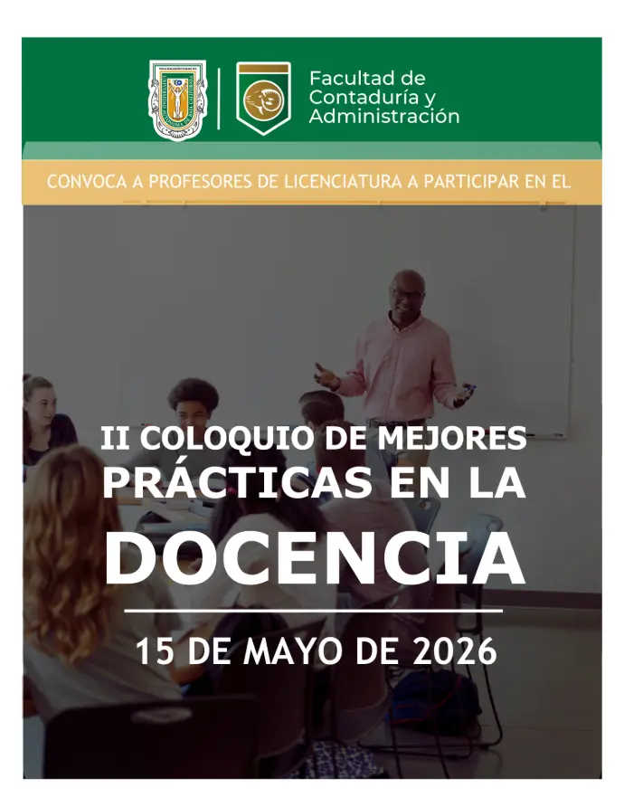 La Facultad de Contaduría y Administración invita a todos los profesores de licenciatura a compartir sus experiencias educativas y estrategias innovadoras en nuestro próximo coloquio.