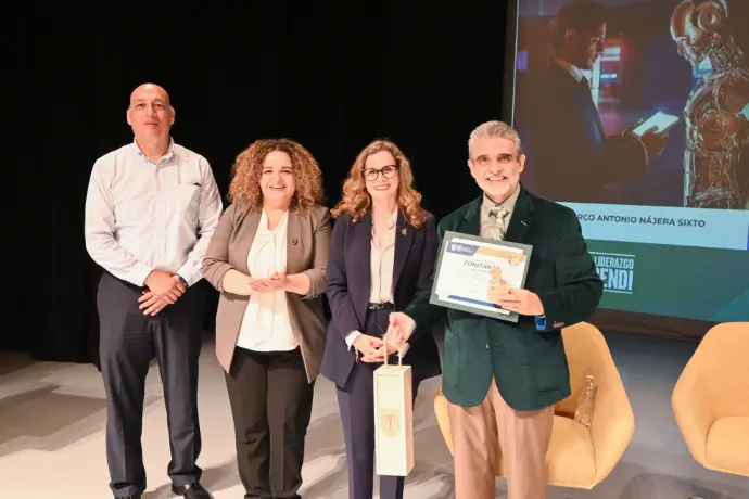 Posteriormente, disfrutamos de la conferencia “Inteligencia Artificial con Liderazgo Humano”, impartida por el M.B.A. Marco Nájera, que invitó a reflexionar sobre el papel de la IA en el ámbito universitario y profesional.