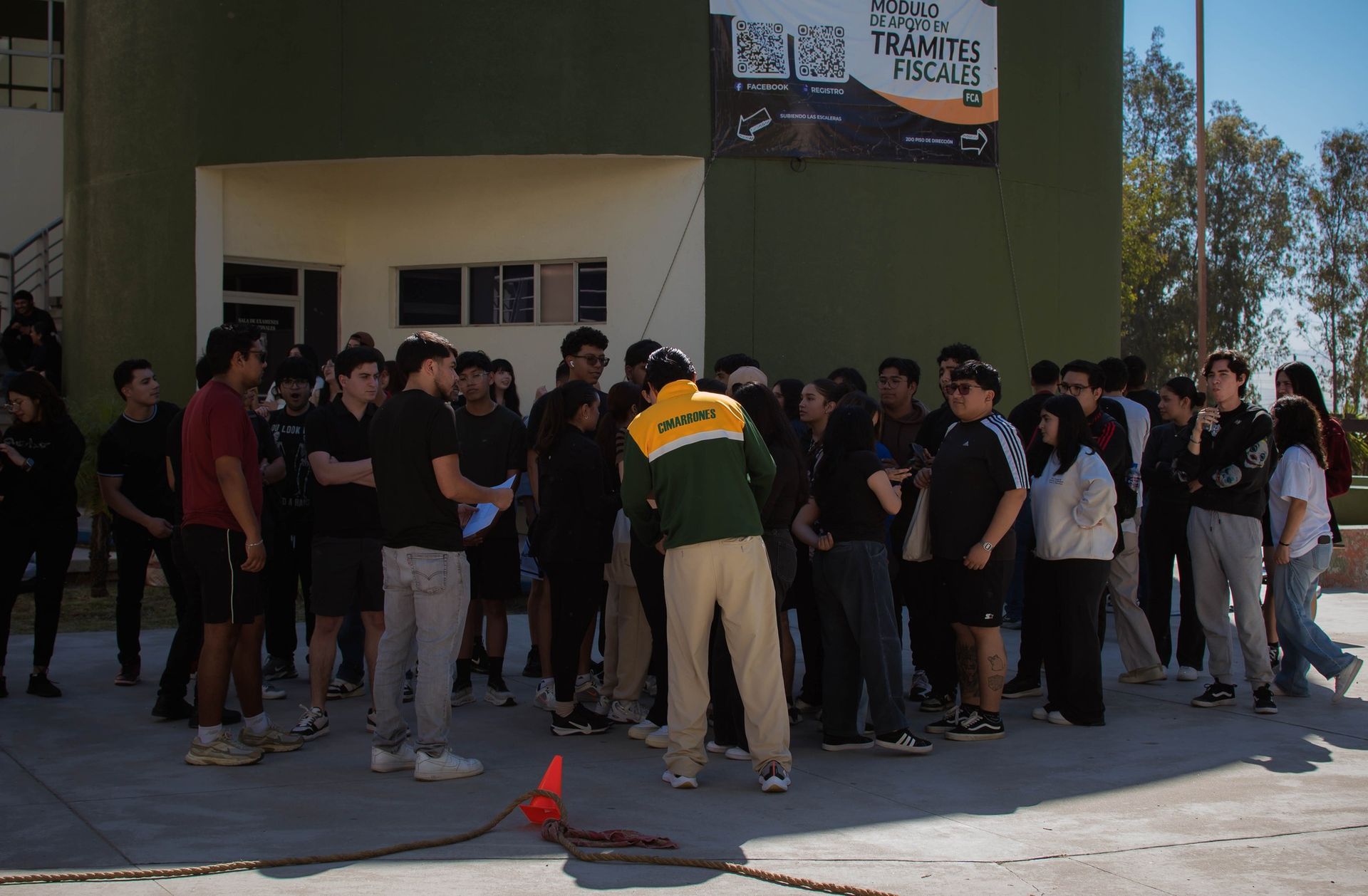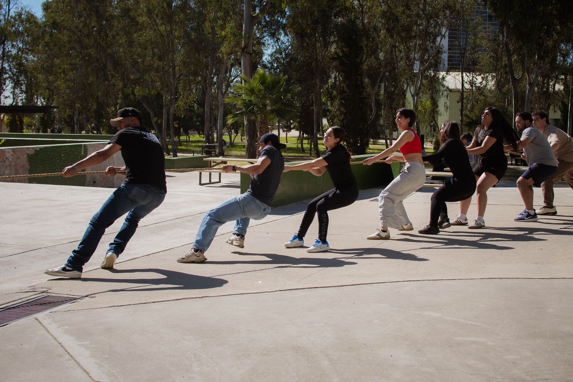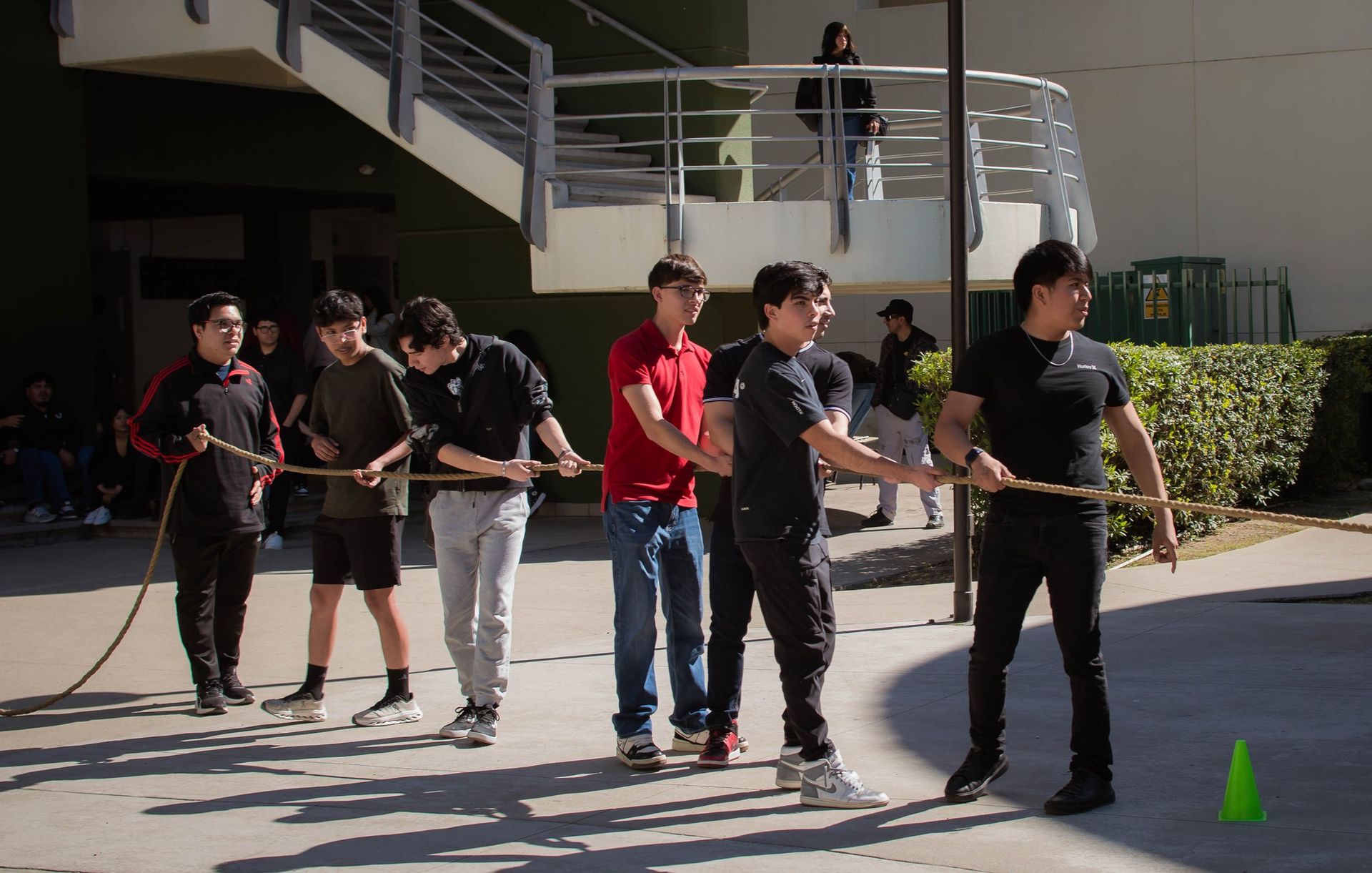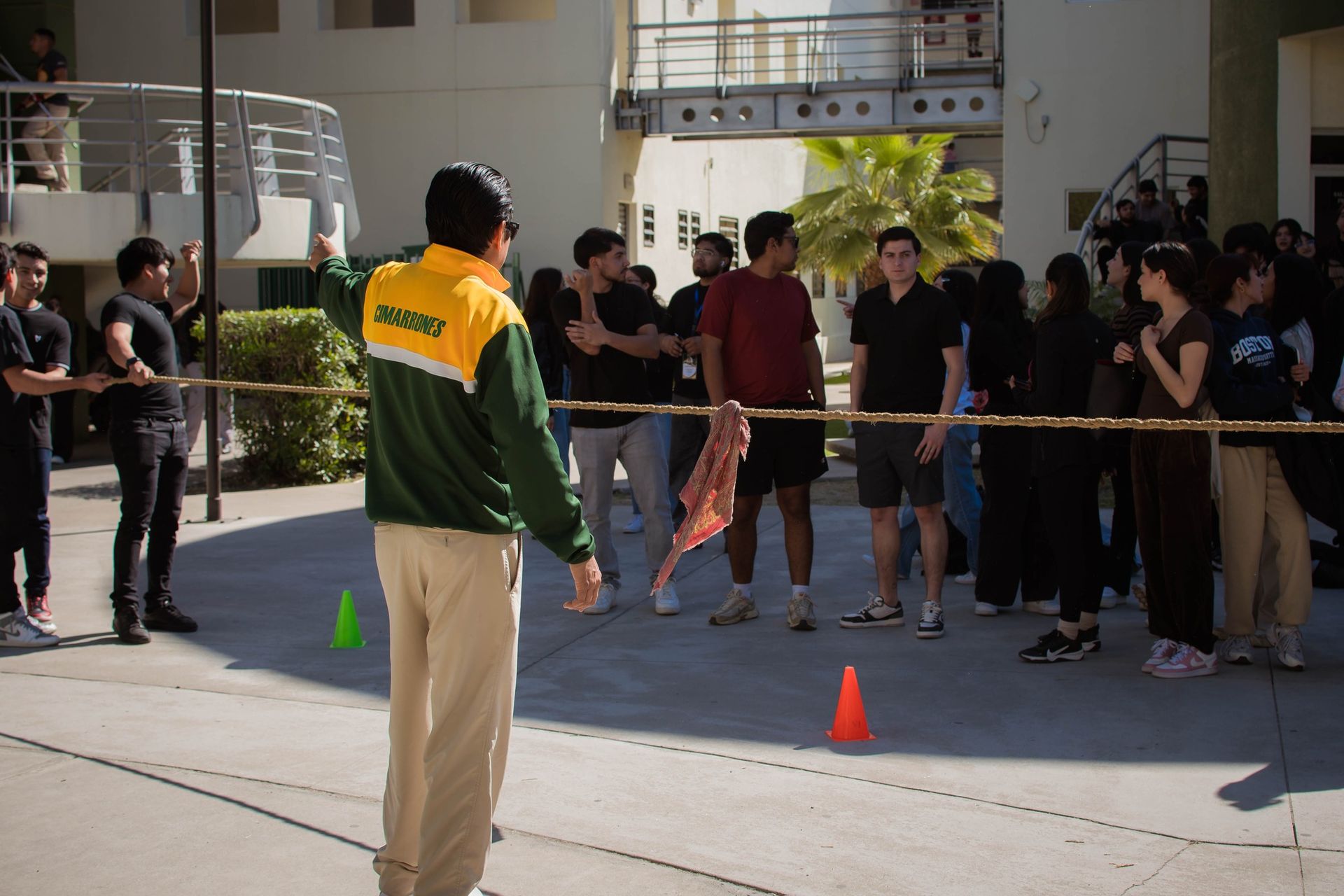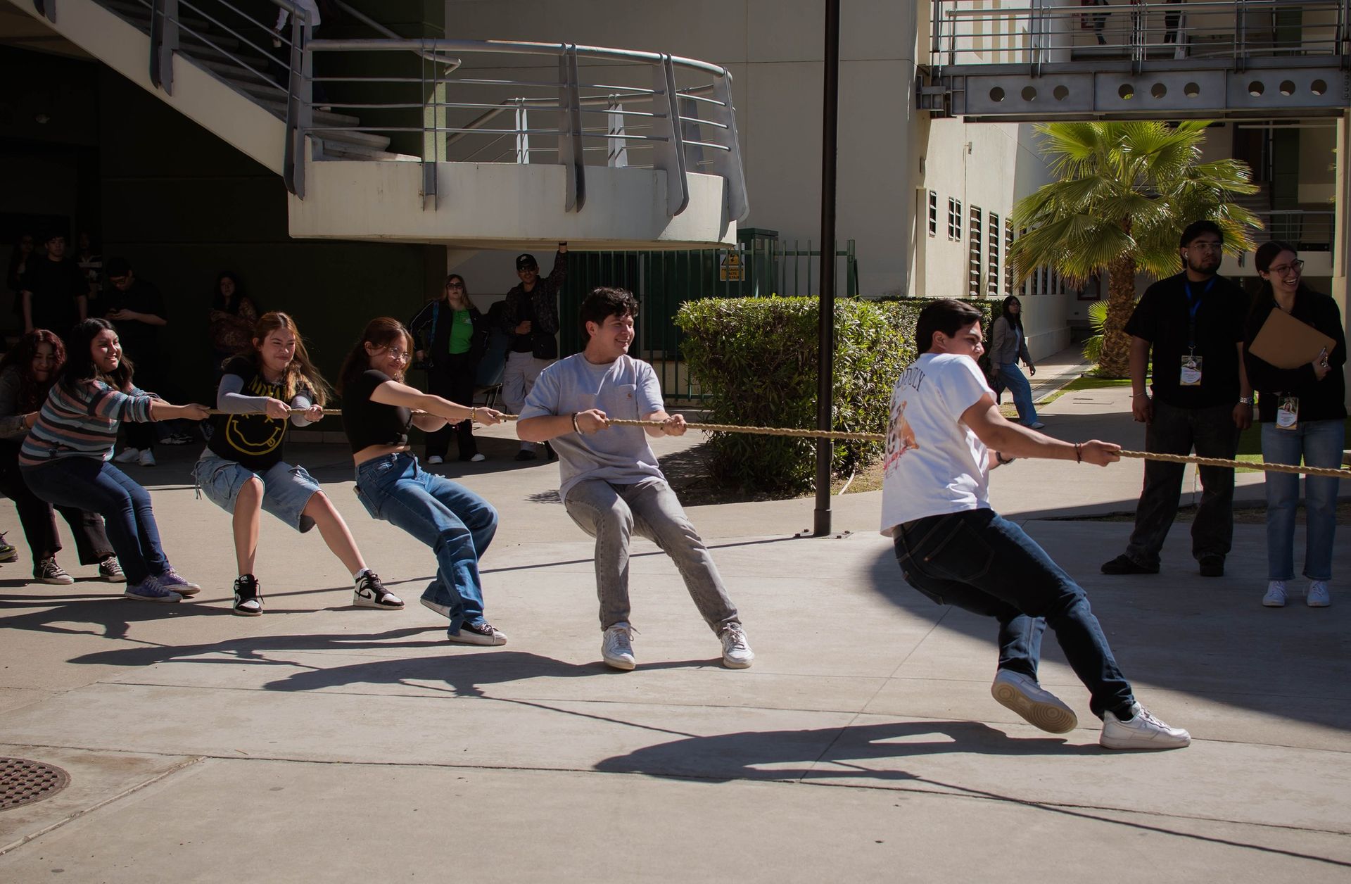 Estudiantes participaron en la dinámica de tirar la cuerda, compartiendo un momento de actividad y convivencia.