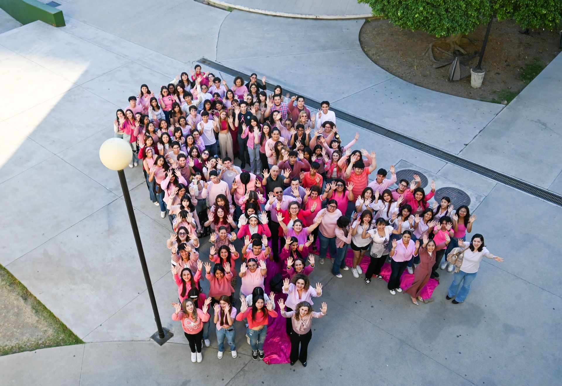 El pasado lunes 20 de octubre, la Facultad de Contaduría y Administración conmemoró el Día Mundial de la Lucha contra el Cáncer de Mama con la tradicional fotografía grupal con el lazo rosa, realizada en los turnos matutino y vespertino.